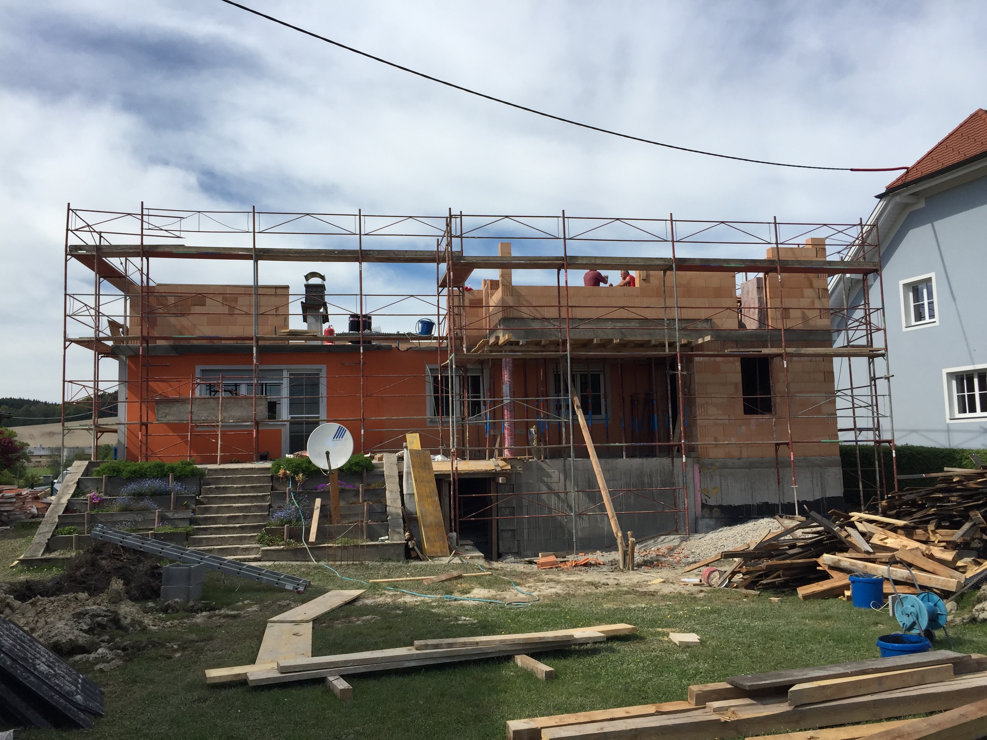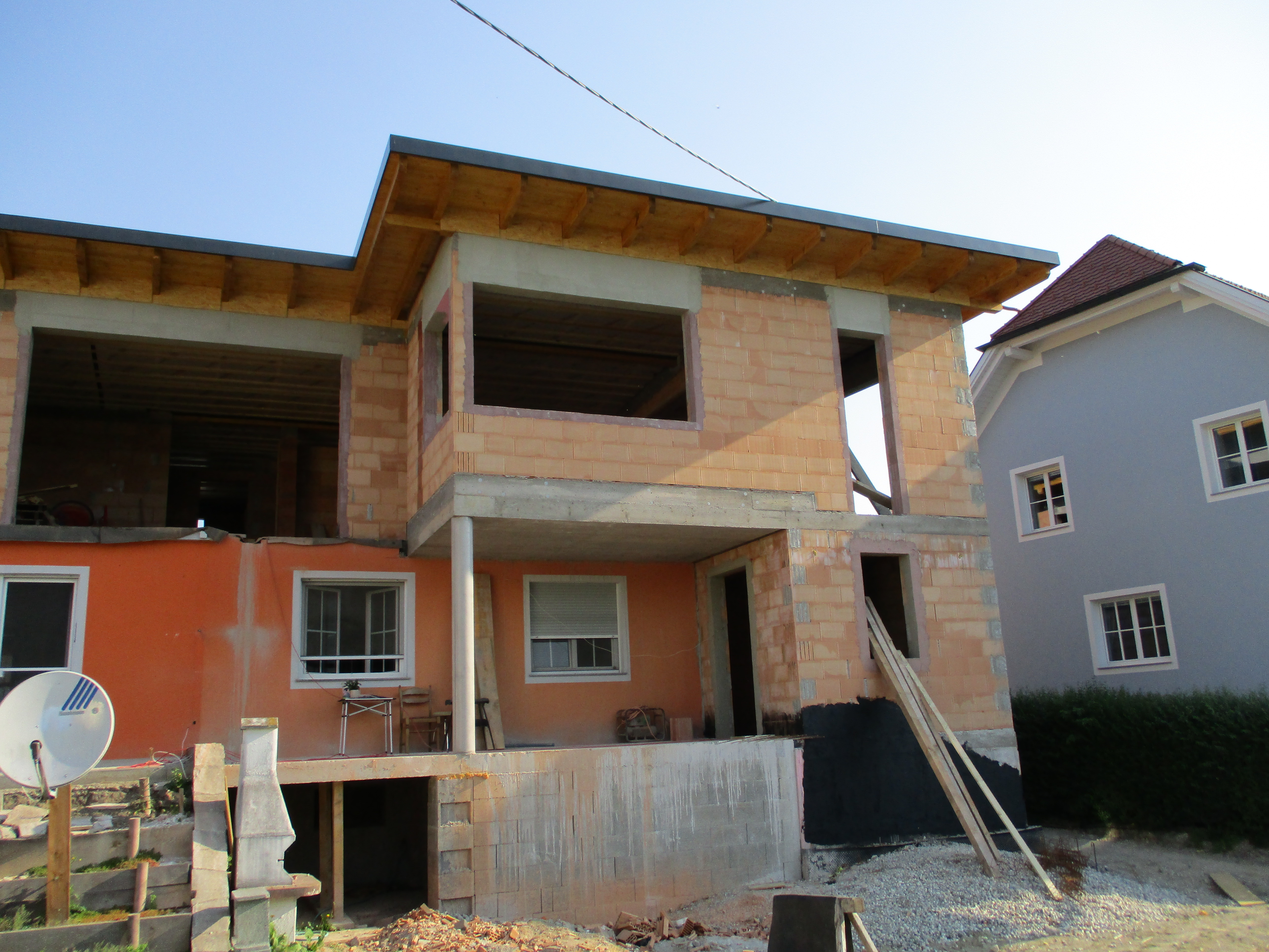 Auf das Großelterliche Haus wurde kurzerhand das Dach abgerissen und ein neuer Wohnraum in moderne Bauweise aufgestockt.